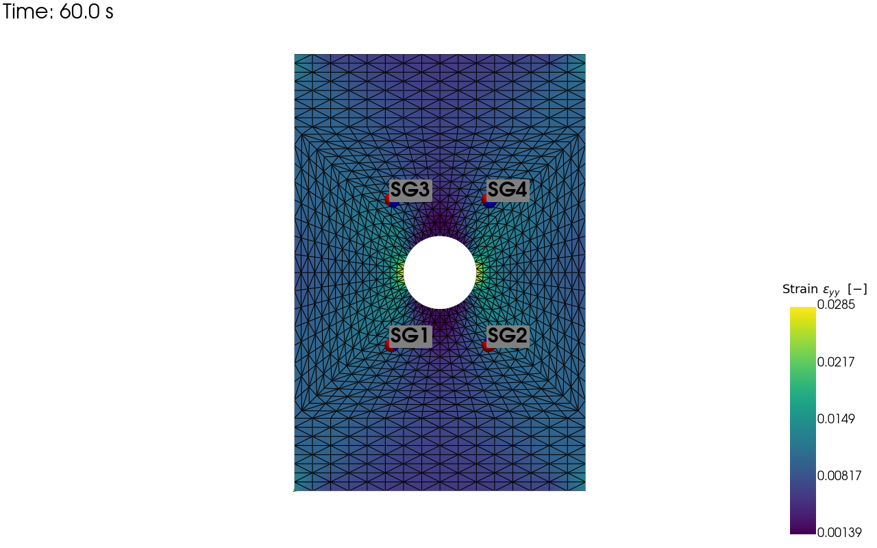 This example demonstrates the application of the pyvale sensor simulation module to tensor fields in 2 spatial dimensions. An example of a vector field sensor would be a displacement transducer, point tracking or velocity sensor.